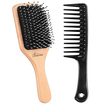 Arrives by tuesday, mar 30. Look for a brush with a metallic core to help hold and then distribute heat from a blow dryer onto hair. The bristles should be flexible at the base so the brush glides easily and doesn't snag or tear hair strands. Reecho paddle hair brush wide tooth comb set, detangling comb for human hair synthetic hair extensions wigs hairpieces, styling hairbrush for long short thick thin straight curly wet dry hair golden. List was $11.29 $ 11.